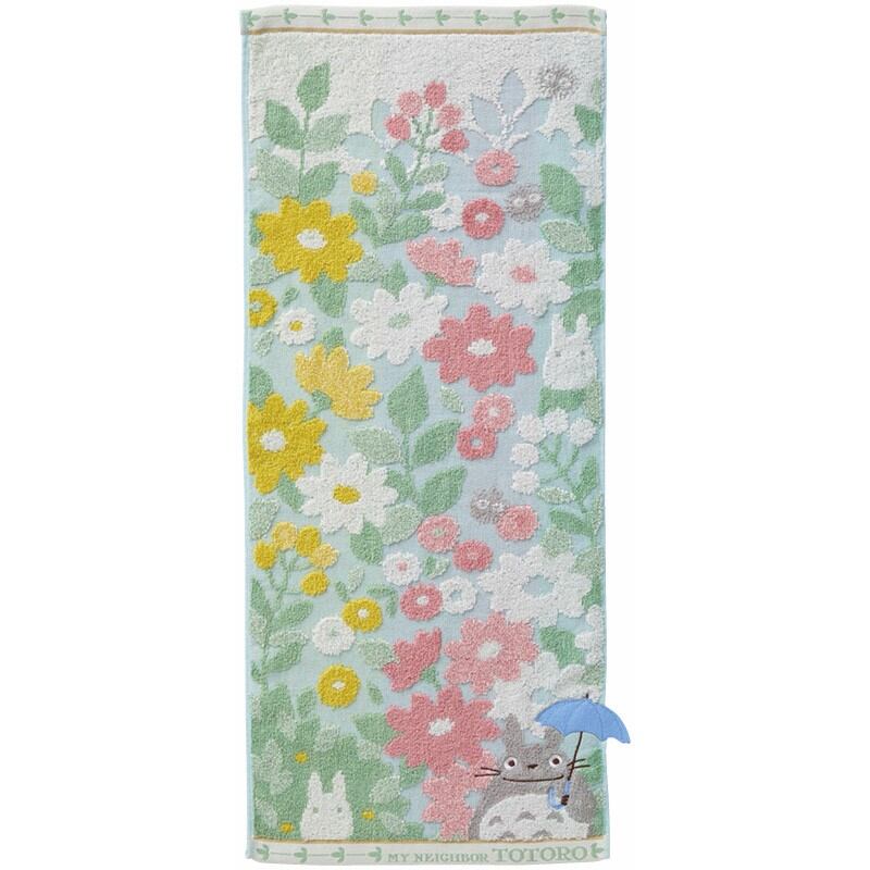 淡い色合いの可愛いトトロのフェイスタオル。傘のはみ出しアップリケがワンポイント!