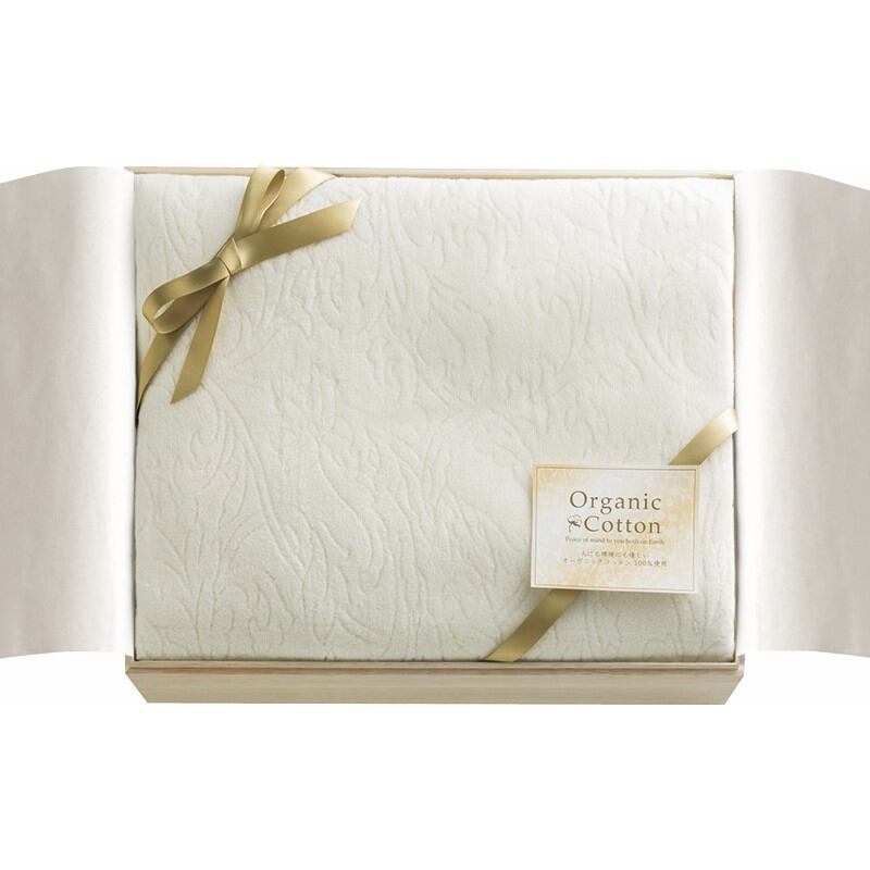 オーガニックコットンを使用した日本製の毛布です。特別な贈り物にぴったりの国産木箱入です。