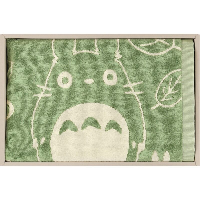 葉っぱと小トトロ、まっくろくろすけ等のモチーフが楽しくレイアウトされたタオル地のバス