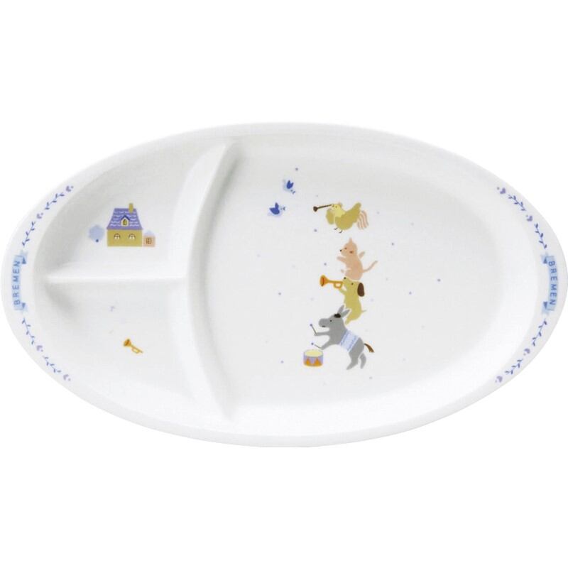 「食育応援!」バランスの良い食べ方が自然に身につくのがこのプレート。一汁三菜の配膳を元に三角食べが出来るよう仕切りの面積やプレートの幅が計算されています。夕食にもランチにもお使いいただける便利なプレートです。割れにくい、耐熱強化耐熱磁器「テクノセラム」なので、お食い初めや、離乳食の時から安心してお使いいただけます。ナルミの子供食器は、子供もママも使いやすい子供食器。日本製です。