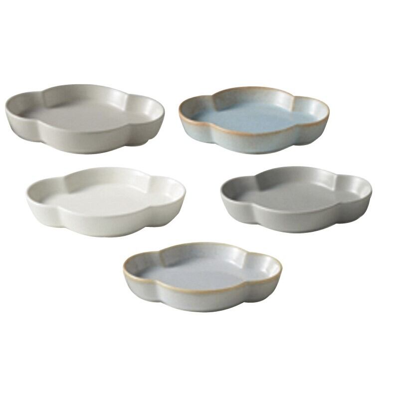 小さな雲形5枚の小皿セット。5種類の違った釉薬が微妙に違う世界を楽しめます。ちょっとした取り皿として、また昆布や梅干しなどを盛り付けたり、チョコレートや和菓子にも使えます。もらって嬉しい5枚小皿セットです。