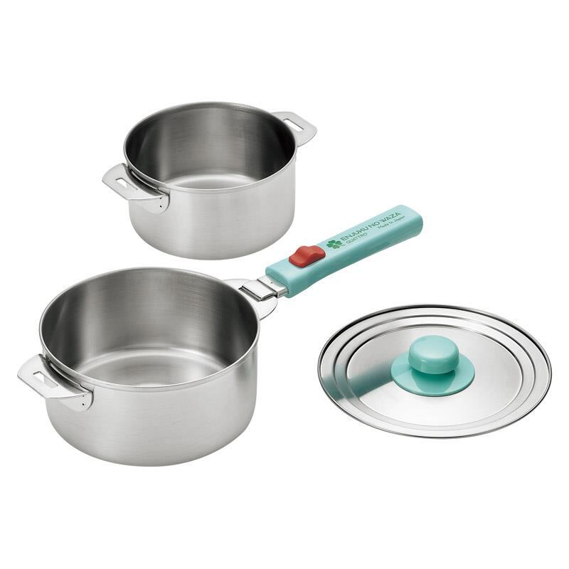 商品内容:鍋14cm(約1.1L)(約145×195×73mm)・鍋16cm(約1.6L)(約165×215×78mm)・兼用蓋・着脱ハンドル×各1
