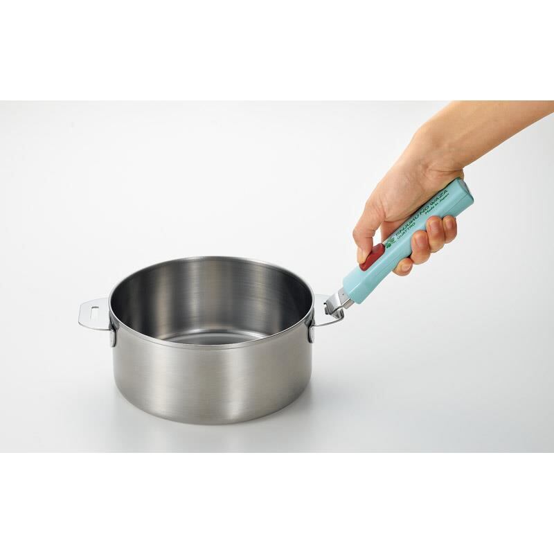 熟練の技巧、信頼の日本製。優れた耐久性と保温性を誇るステンレス鋼。ハンドルは着脱式なので、コンパクトに収納できます。ハンドルとツマミは可愛らしいパステルカラーで、ハンドルには幸運を表す四つ葉のクローバーのロゴ入りです。本体のみ食洗機OK。