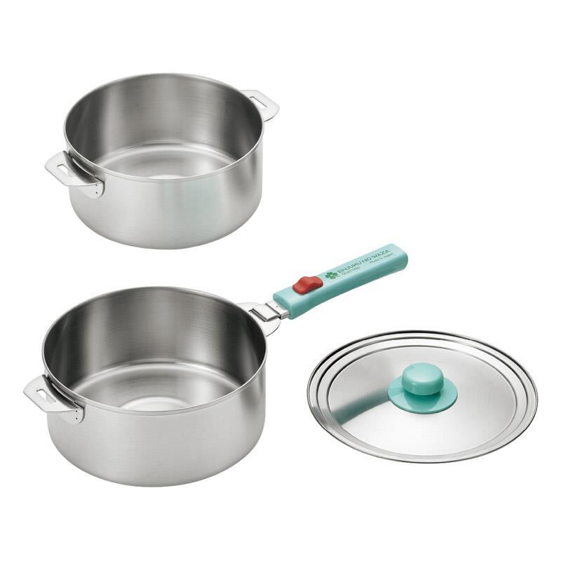 熟練の技巧、信頼の日本製。優れた耐久性と保温性を誇るステンレス鋼。ハンドルは着脱式なので、コンパクトに収納できます。ハンドルとツマミは可愛らしいパステルカラーで、ハンドルには幸運を表す四つ葉のクローバーのロゴ入りです。本体のみ食洗機OK。