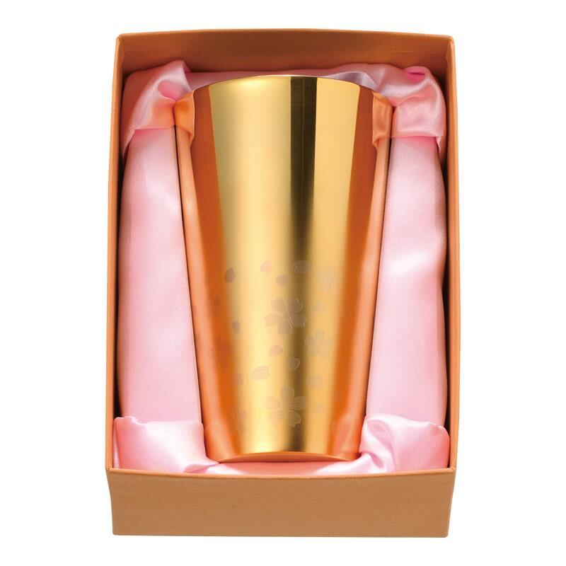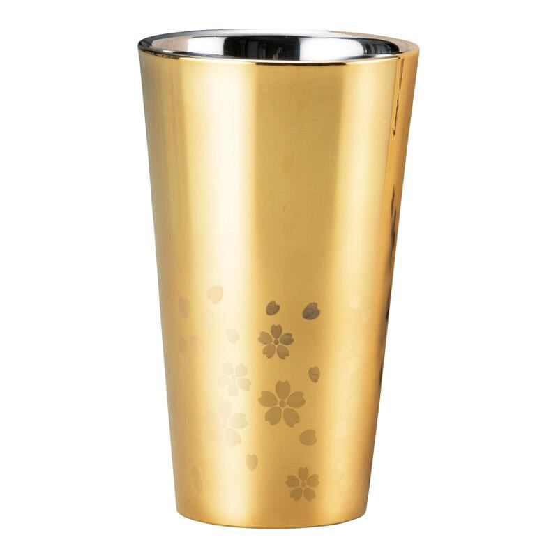さくら街道 ステンレス二重タンブラー(外面金メッキ) 300ml ME-7350 御祝.お返し,引出物,記念品などのご用途にも好適