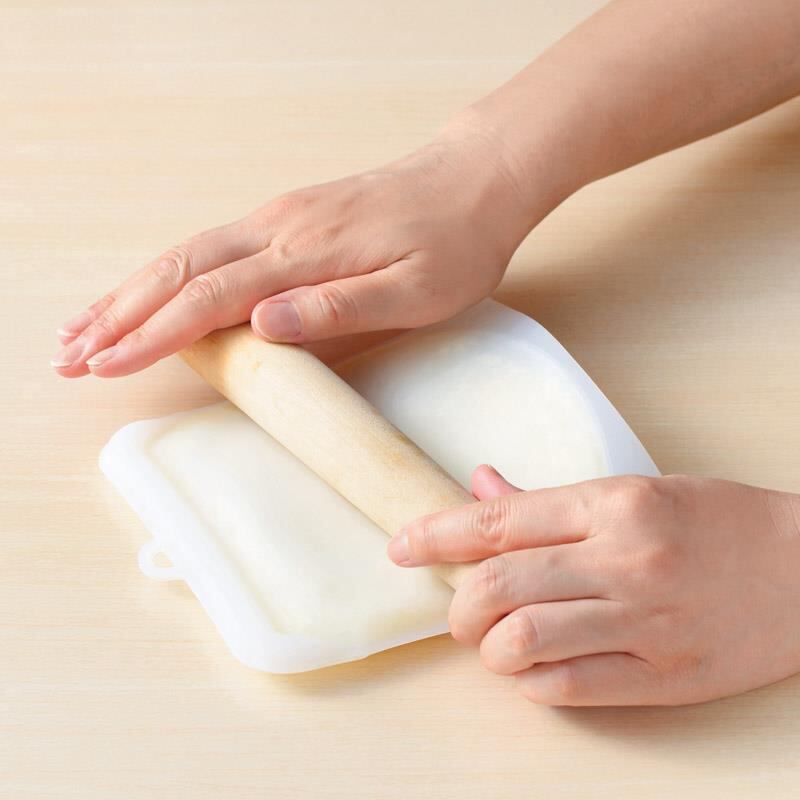 温め、蒸す、潰す、漬ける、低温調理、冷蔵、冷凍に使えるシリコーンバッグ。繰り返し使えるので経済的です。フック付で調理の取り出しや収納に便利。