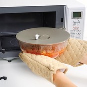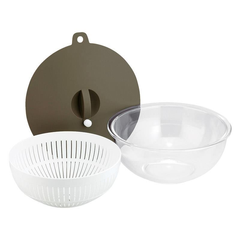 下ごしらえ、カレー、パスタまでレンジで鍋のように調理できる耐熱ガラスボウルセット。ラップ代わりに使えるシリコーン蓋(蒸気弁付)、下ごしらえや蒸し調理に便利なザル付です。