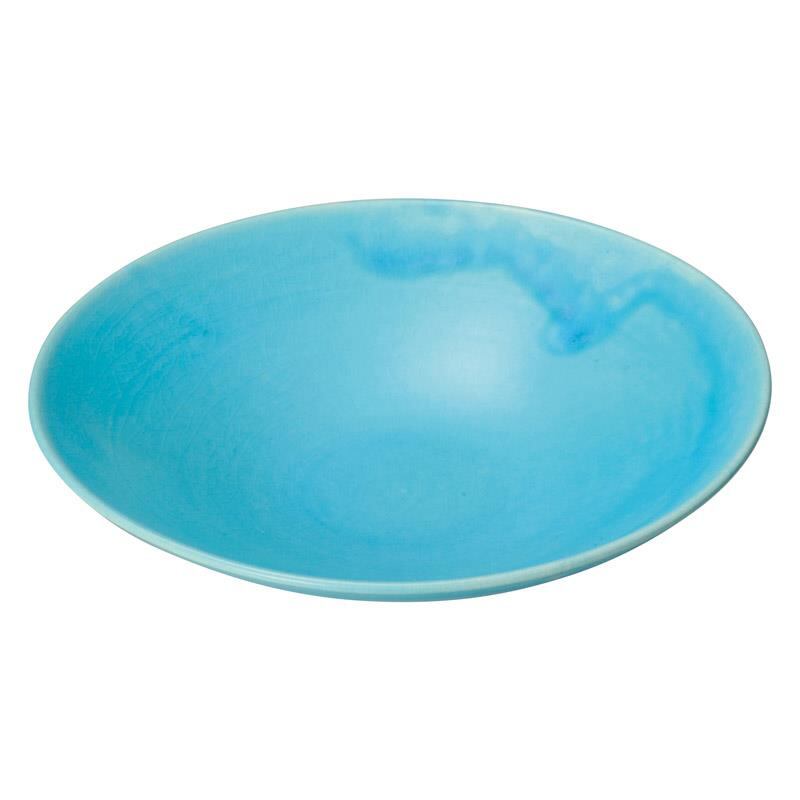 あでやかなトルコブルーの器。琵琶湖の色をモチーフに作成しました。窯の場所やその時の土の性質、季節などでひとつひとつ表情が異なる味わいがある一品です。