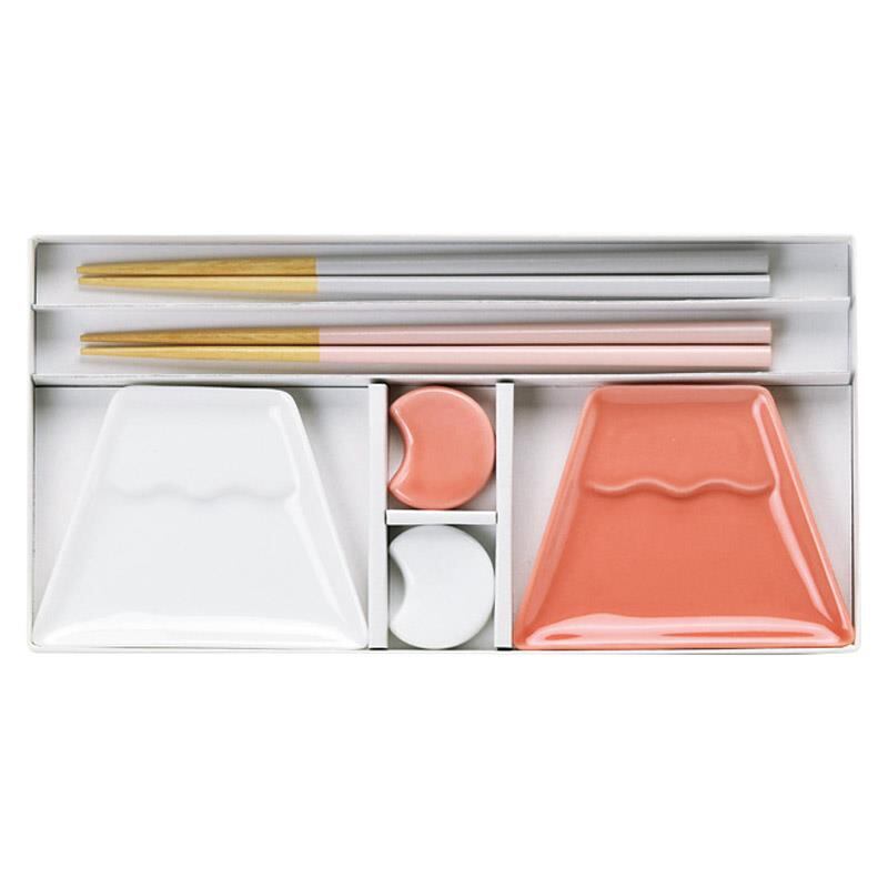 日本文化の象徴、富士山とその風景をモチーフにした箸、箸置揃。小皿は醤油小皿や和菓子をのせても味わいを感じられます。