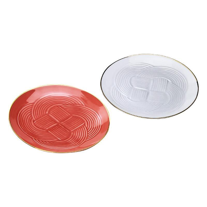 縁結び、水引など古来より日本では【結ぶ】という行為や文様をおめでたいものとしてきました。途切れることなく続く組みひものレリーフを施した、祝いの席で使っていただきたい商品です。