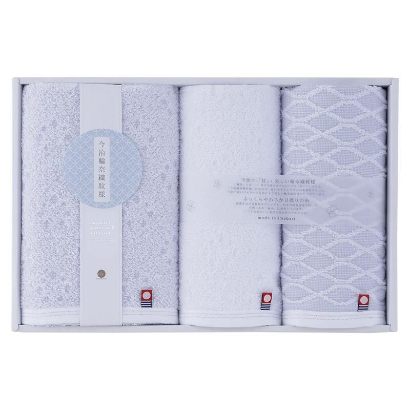 今治輪奈織紋様 あられ&つなぎ フェイス1P・ウォッシュタオル2P 22744-03525-301 御祝.お返し,引出物,記念品などのご用途にも好適