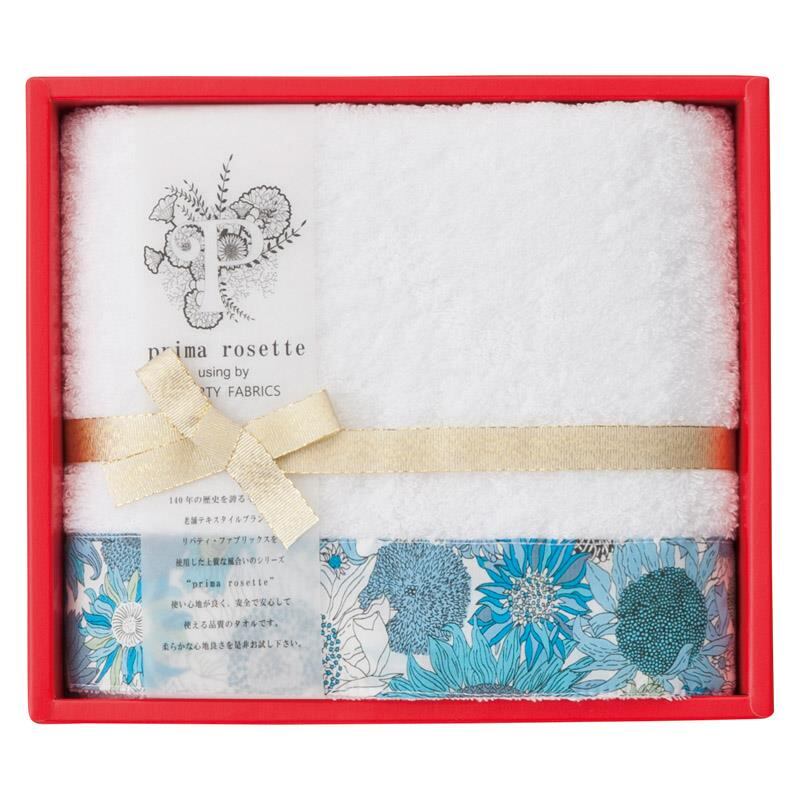 prima rosette using by LIBERTY FABRICS フェイスタオル ブルー PR-2412-BL 御祝.お返し,引出物,記念品などのご用途にも好適