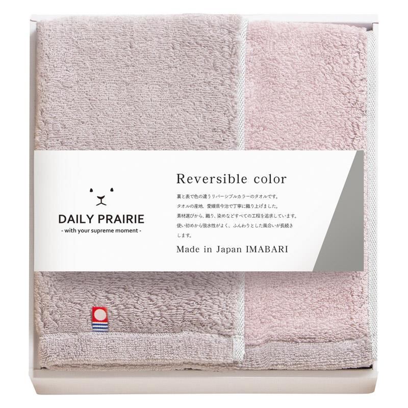 DAILYPRAIRIE リバーシブル ハーフバスタオル グレージュ/ピンク COREV-171 GRG 御祝.お返し,引出物,記念品などのご用途にも好適