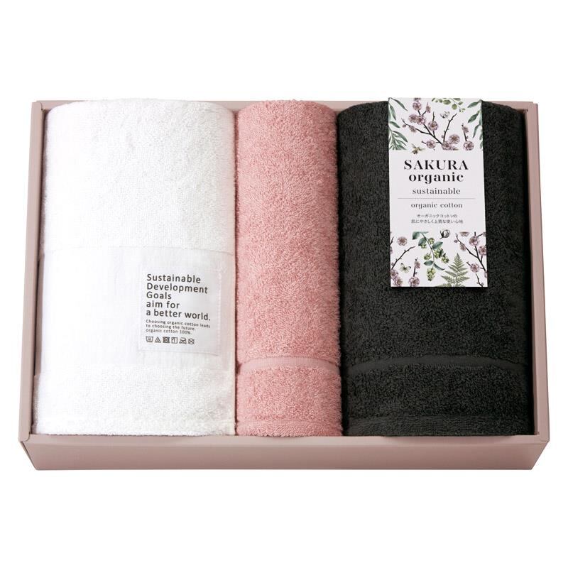 国際認証取得オーガニック バス2P・フェイスタオル1P サクラ 67072 御祝.お返し,引出物,記念品などのご用途にも好適