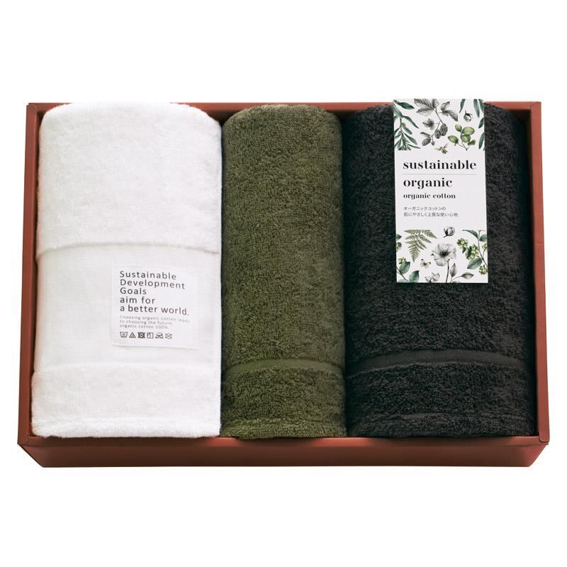国際認証取得オーガニック バス2P・フェイスタオル1P グリーン 64772 御祝.お返し,引出物,記念品などのご用途にも好適