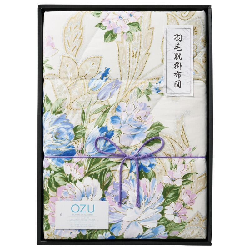 OZU 羽毛肌掛けふとん ブルー OZF-152 御祝.お返し,引出物,記念品などのご用途にも好適