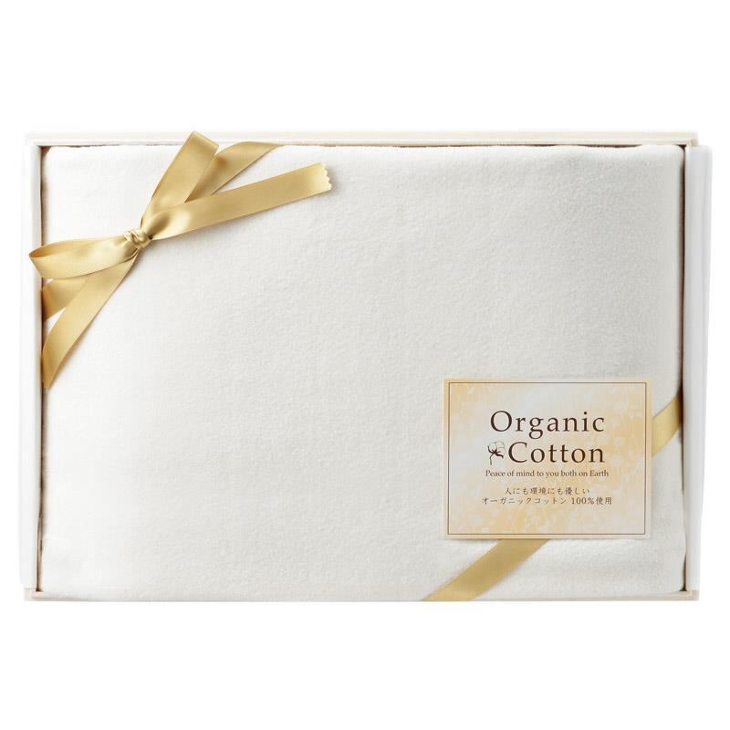 三年間化学薬品を使用していない土壌で栽培された「オーガニックコットン」を使用した毛布です。綿本来の生成り色の毛布は、軽く柔らかな肌ざわりで保温性・保湿性にもすぐれています。高級感のある木箱に入れてお届けします。