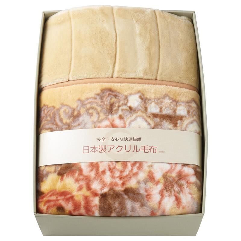 日本製アクリルマイヤー衿付き合せ毛布(毛羽部分) BSM-15 御祝.お返し,引出物,記念品などのご用途にも好適