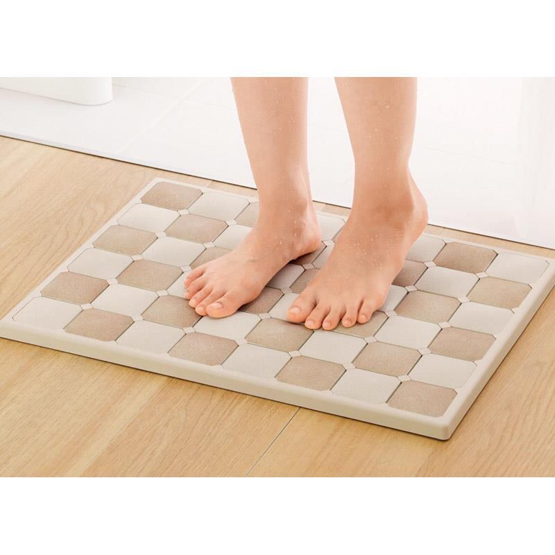 ・タイルと床の間に隙間があるので裏面の通気性を確保・天日干しでもヒビ割れない素材で、早く清潔に乾かせます・洗剤を使って洗っても吸水力が低下しにくい!・取り外し可能な構造で、万一破損しても簡単に交換できます