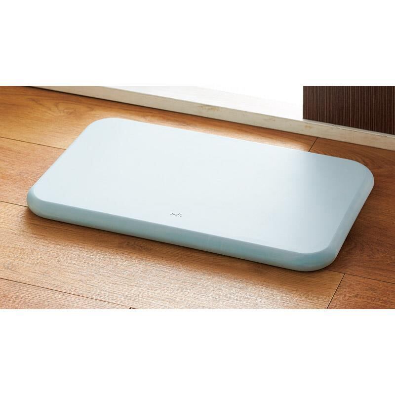 吸水性の高い自然素材、珪藻土(けいそうど)でつくられたバスマットです。足の裏の水分をすばやく吸い取り、時間がたつと自然に乾燥します。