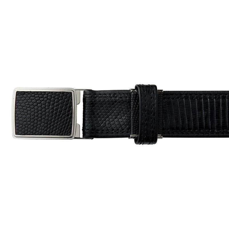 細かな斑が美しいトカゲ革の魅力が光る。熟練した職人が1本ずつ丁寧に仕上げたリザード革(トカゲ)のベルト。軽量かつ丈夫な革の特性を十分に活かして仕上げました。