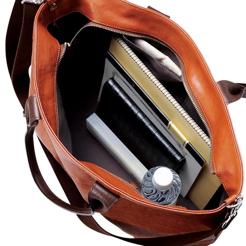 型押しレザーを使用しているので傷も付きにくく、トートバッグ、ショルダーバッグの2ウェイでお使い頂けます。●ファスナー開閉式●内側:ファスナーポケット×1、オープンポケット×2●ショルダーベルト付(最大123㎝)