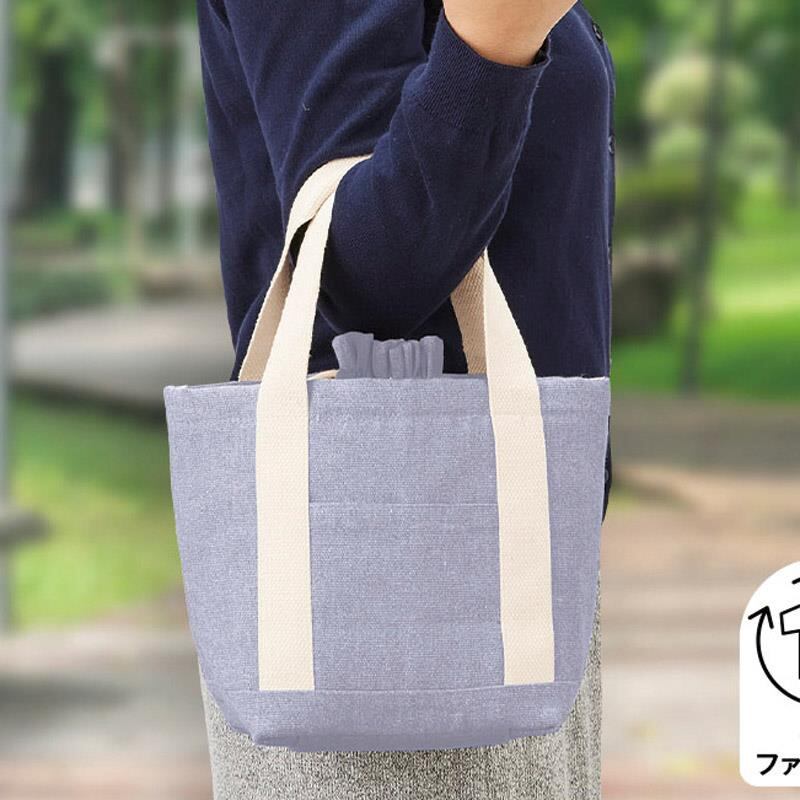 ラウンドボトムとスタッズがアクセント。保冷バッグに見えないデザインも◎。廃棄予定だった生地の切れ端を再利用したエシカルなバッグです。
