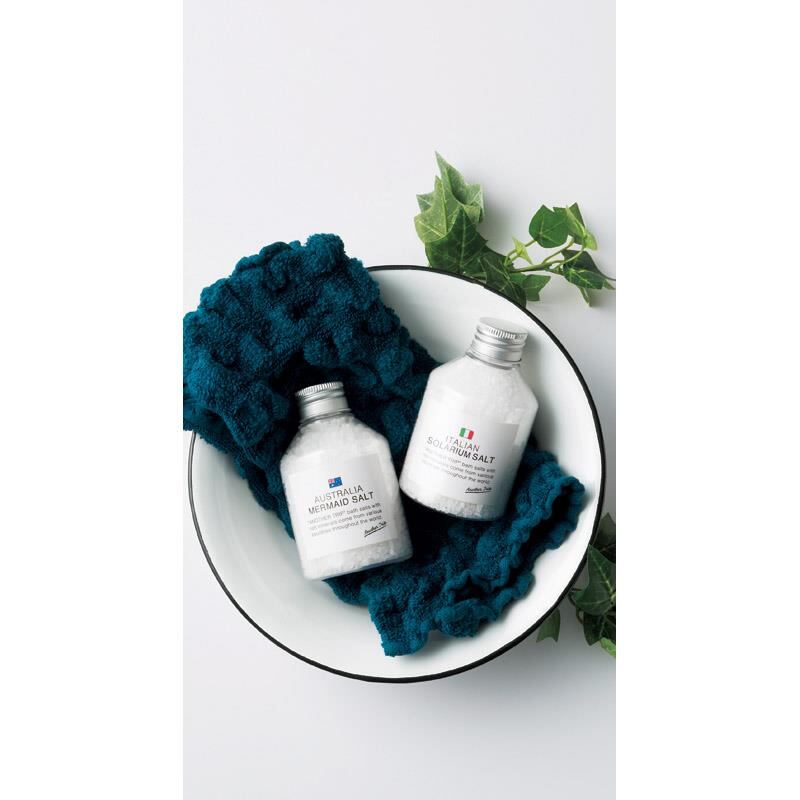 商品内容:バスソルト(イタリアン)(約180g)・バスソルト(オーストラリア)(約175g)・ブラシ・ふわもこウォッシュタオル(約220×220mm)×各1、マイクロファイバークロス(約250×250mm)×2
