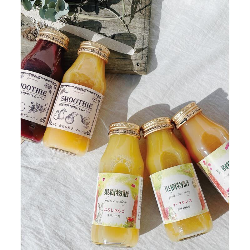 商品内容:果樹物語(おろしりんご・ラ フランス・もも)(180ml)・スムージー(にんじん&ラ フランス&りんご・りんご&もも&ラ フランス・ぶどう&りんご&ブルーベリー)(180ml)×各1