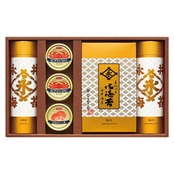 商品内容:焼のり(2切4枚2袋)・味のり(8切4枚10袋)・のり茶漬(6袋)・貝柱ほぐし身×各1、カニ缶×2