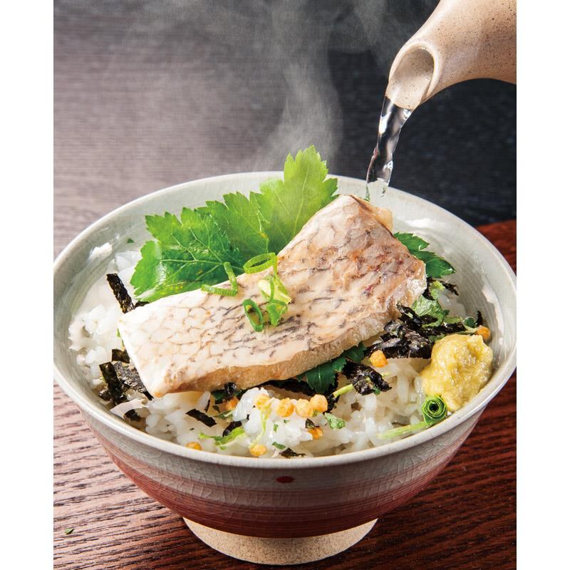 お茶漬けの具材にあう食感を追及し加工を施した産地にこだわった素材(魚介・梅干)と、なつれブランド独自のかつお節をベースにしただしつゆ、薬味(あられ、焼海苔、三つ葉)をセットにした海鮮茶漬けの詰合せです。