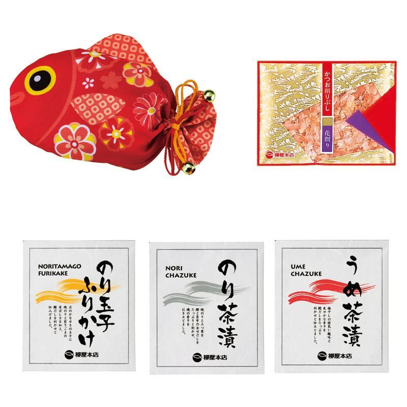 商品内容:花削り(3g)・のり玉子ふりかけ(4.5g)・のり茶漬(4.3g)×各3、うめ茶漬(4.3g)×2