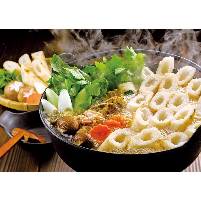 秋田の素朴な郷土料理「きりたんぽ」 あきたこまち100%使用のきりたんぽ、比内地鶏スープ、鶏肉等の具材に季節の野菜を入れてお召し上がりください。