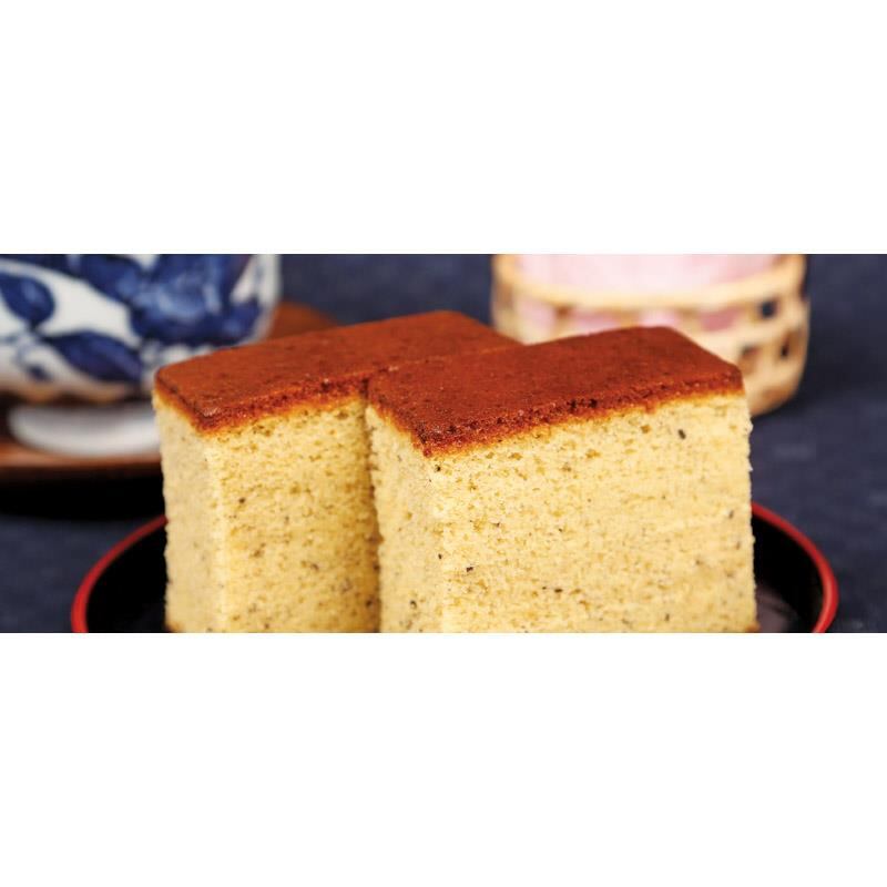 ふわふわの食感で優しい甘さのカステラ 伝統の製法を守り、日本で昔から栄養の宝庫食材とされて来た黒食材「五黒」(黒米・黒豆・黒胡麻・黒糖・昆布)を加えて焼き上げました。