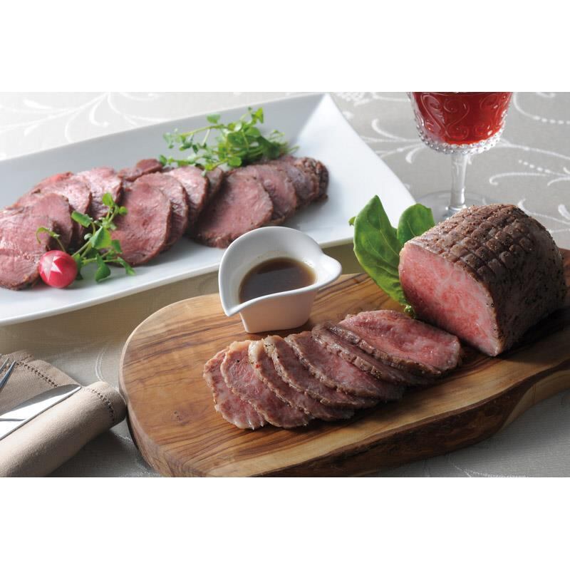 柔らかい肉質、人肌で溶ける脂質、甘くて上品な香りが特徴です。添付のソースは和風でさっぱりした後味なので、濃厚な松阪牛ローストビーフによくあいます。