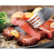 お肉博士が目利きで選びぬいた「牛サーロイン肉」をステーキ用に焼き上げてお届け。レンジで温めるだけの簡単調理。