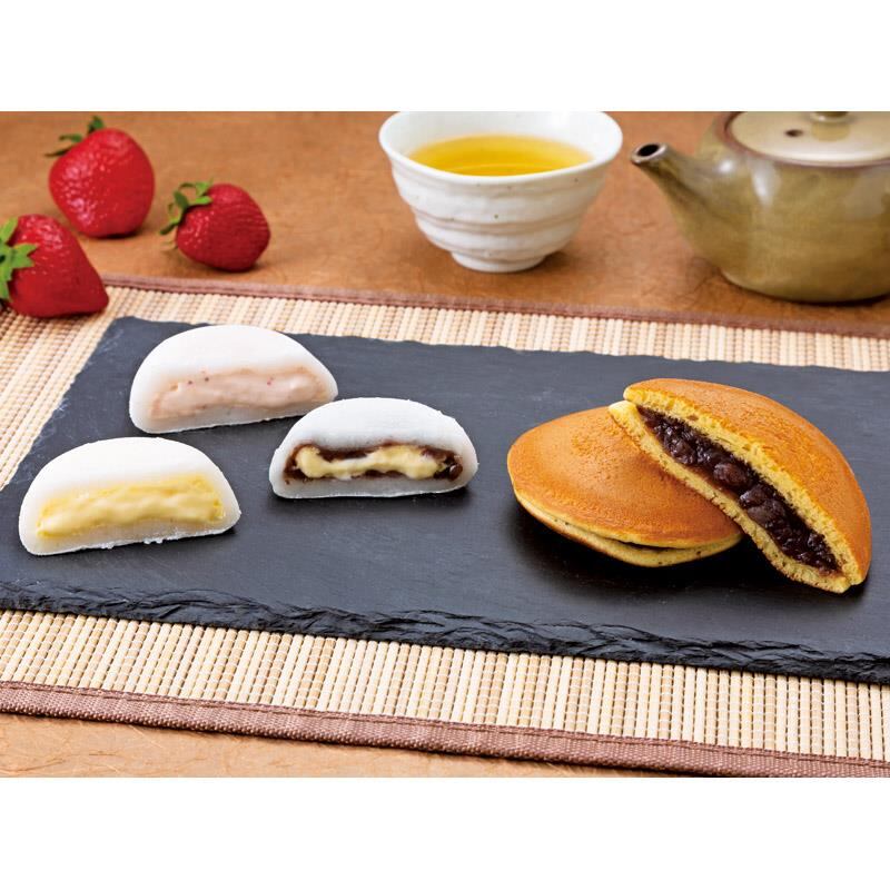 商品内容:とろけるくりーむ大福(カスタード・つぶあんカスタード・あまおう苺)×各2、どら焼き×4
