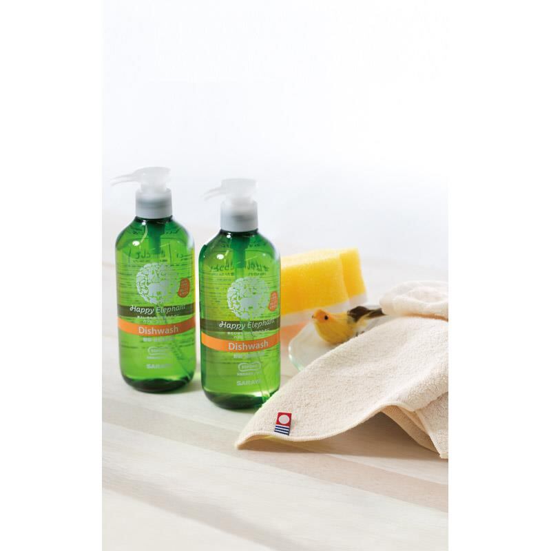 植物と酵母から生まれた未来の洗剤”Happy Elephant”と、従来の精練加工よりもCO2排出削減を実現した無添加のやさしいファブリックのセットです。
