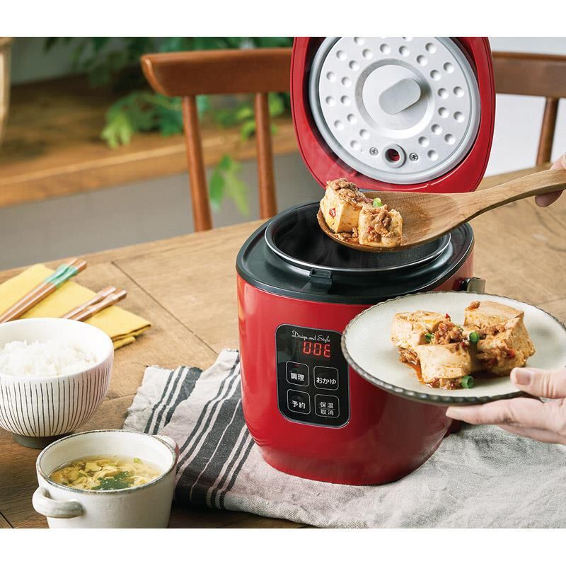 コンパクトサイズで0.5合〜1.5合の炊飯が可能です。おかずやおかゆの調理もできます。レシピブック付。