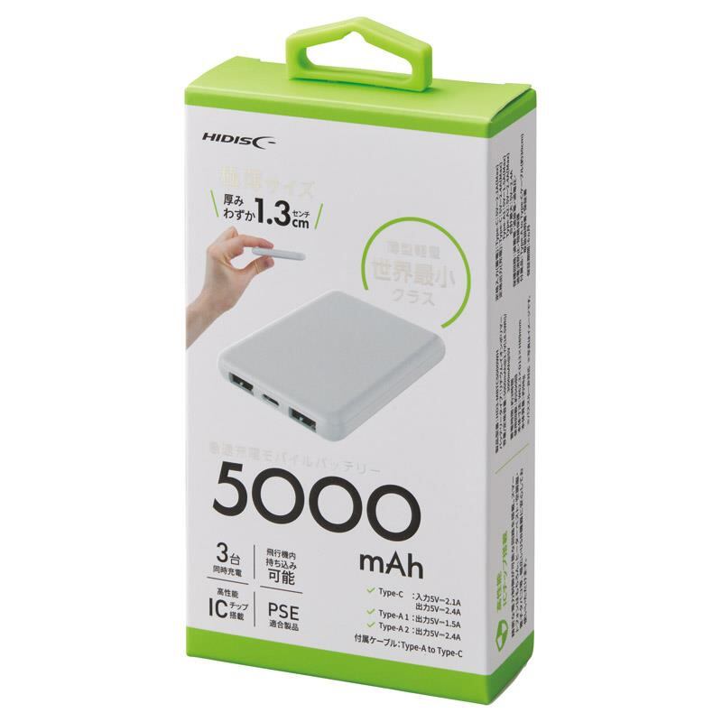 HIDISC モバイルバッテリー5000mAh ホワイト HD3-MBTC5000WH 御祝.お返し,引出物,記念品などのご用途にも好適