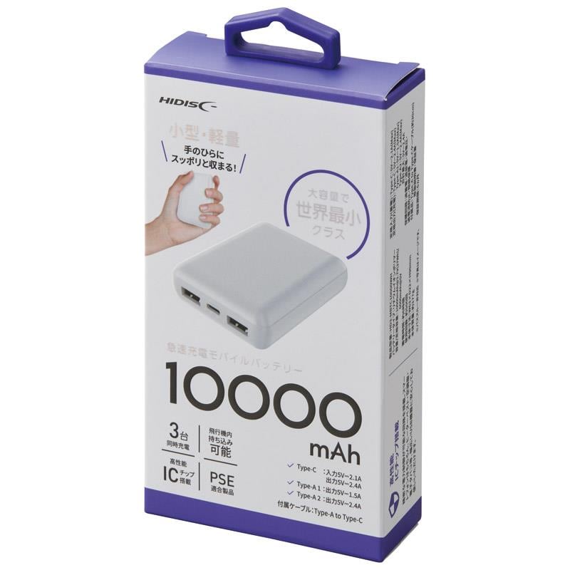HIDISC モバイルバッテリー10000mAh ホワイト HD3-MBTC10000WH 御祝.お返し,引出物,記念品などのご用途にも好適