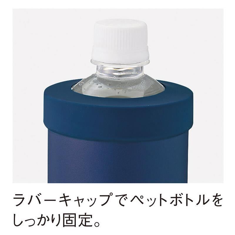 ペットボトルホルダー、缶クーラーにもなる真空2重構造の3WAYステンレスボトル。結露や水濡れも防ぎます。ラバーキャップはすべり止めのコースターとしても使用可能。本体には滑りにくく傷がつきにくい、粉体塗装を採用。