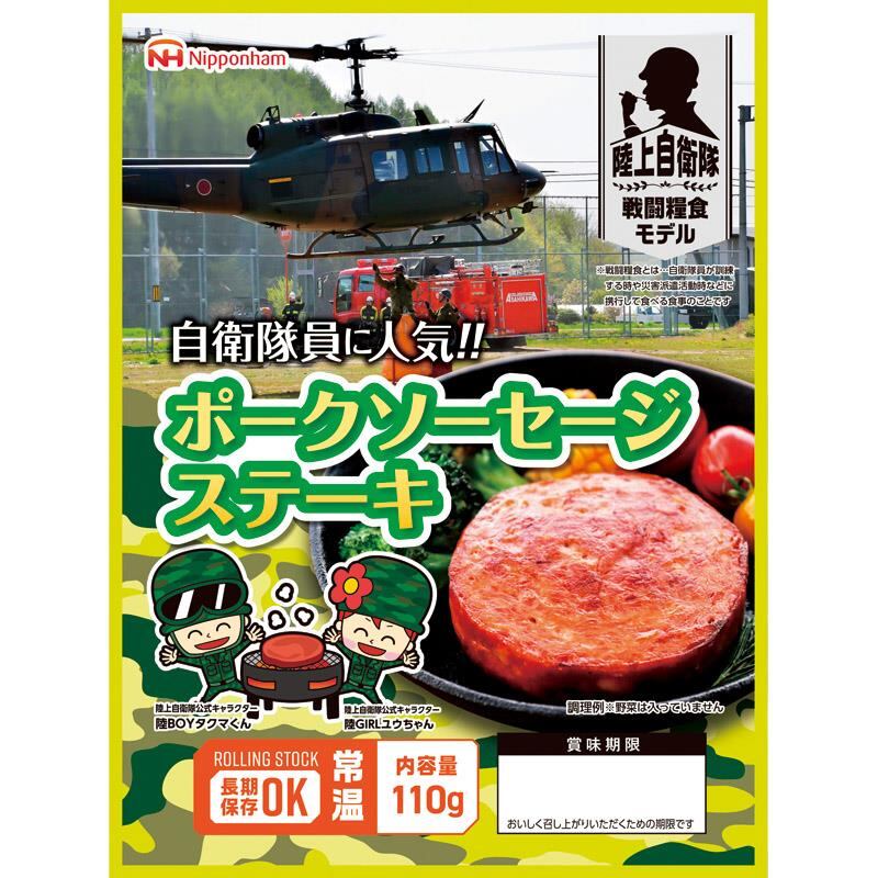 陸上自衛隊戦闘糧食モデル 防災食 ポークソーセージステーキ110g 御祝.お返し,引出物,記念品などのご用途にも好適