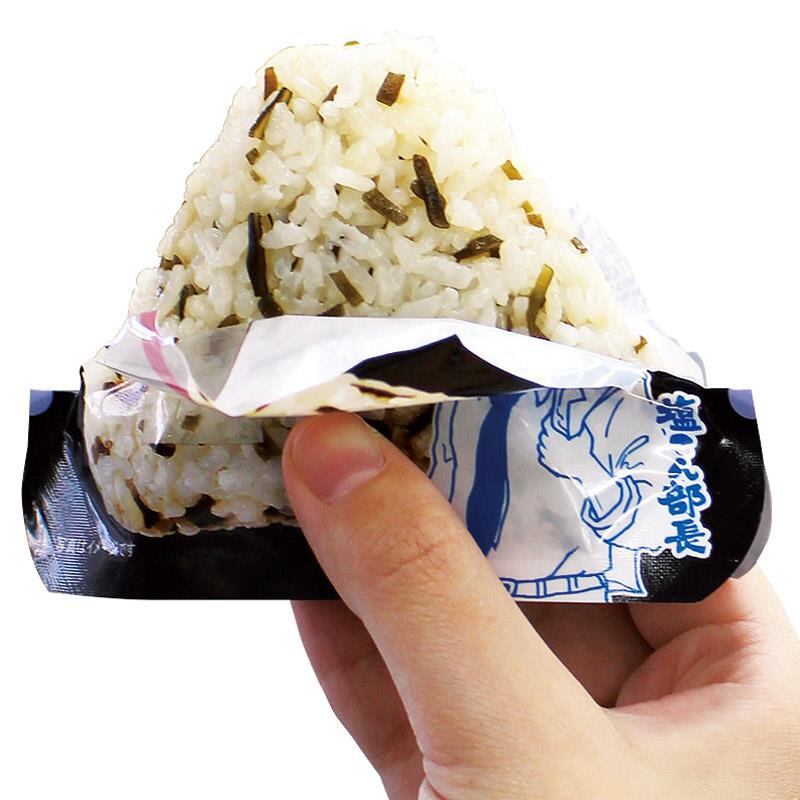 「お湯」または「水」を入れるだけで、具材の旨みがギュッと詰まったおいしい三角形のおにぎりが出来上がります。手を汚さずに食べられる3点カット方式。