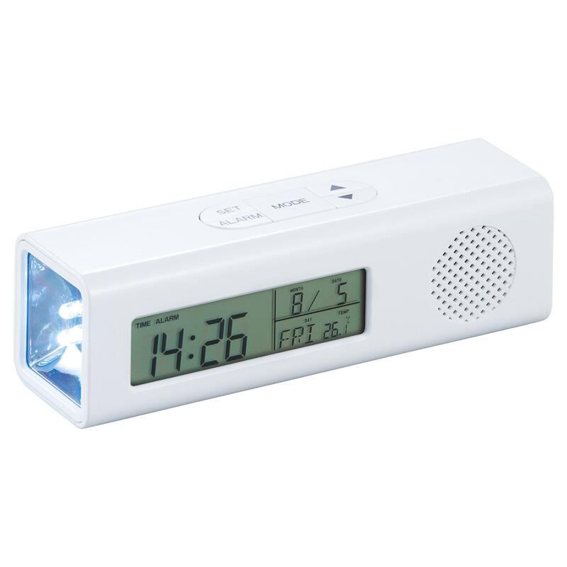 アウトドアにも防災にも役立つ多機能FMラジオライトです。本体を指で押すだけでバックライトが点きます。ワイドFM対応なのでAM番組も聴く事ができます。いざという時の懐中ライトもとても便利です。●LED懐中ライト●FMラジオ(ワイドFM対応)●時計●アラーム●スヌーズ●カレンダー●温度計●カウントダウンタイマー●バックライト