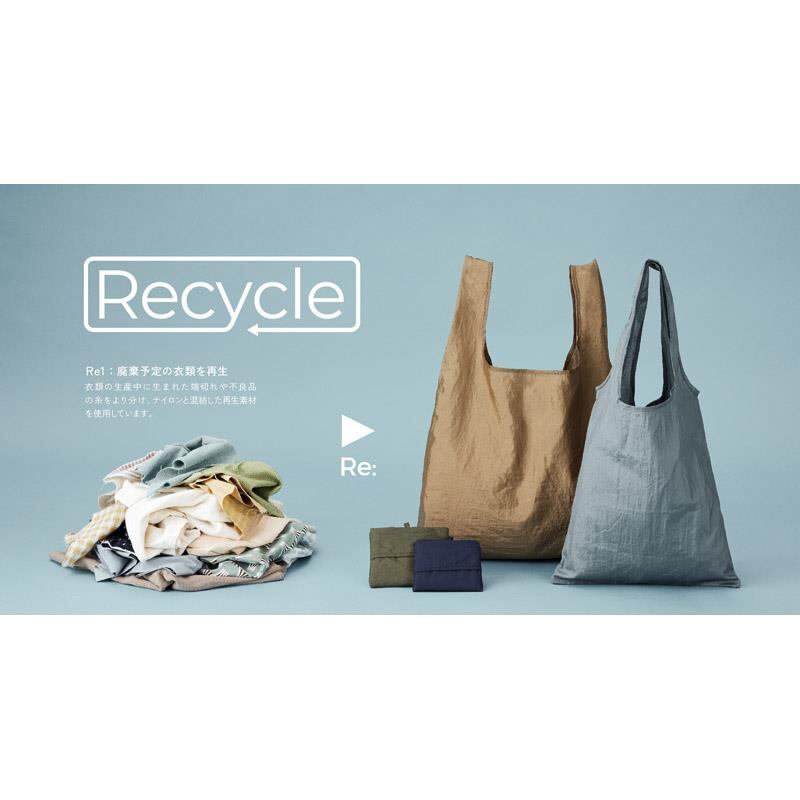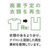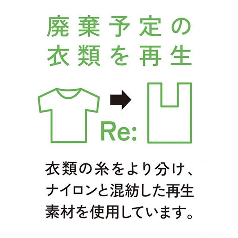 廃棄予定の衣類などにナイロンを混紡したecoな生地を使用。シワになりづらい上質素材のため、たたまずクシャクシャと簡単収納できます。イージーケア素材のため、丸洗い可能です。