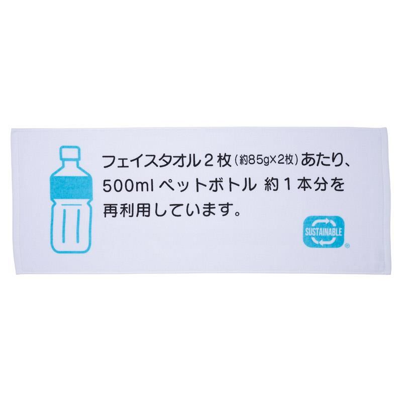 タオルのタテ糸、ヨコ糸にペットボトル由来の再生ポリエステルの糸を使用しています。