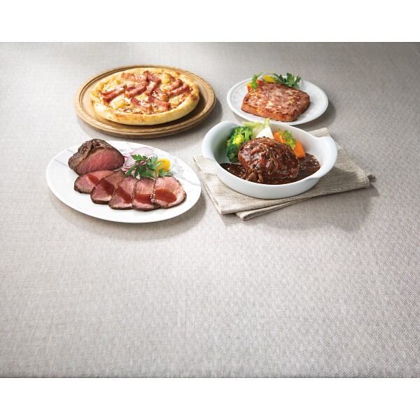 商品内容:●ベーコンたっぷり4種のチーズピザ259g×1、ハンバーグ(牛肉・豚肉使用)130g×4、きのこデミグラスソース80g×4、チーズケーゼ120g×2、直火焼きローストビーフ160g×1(グレービーソース付)