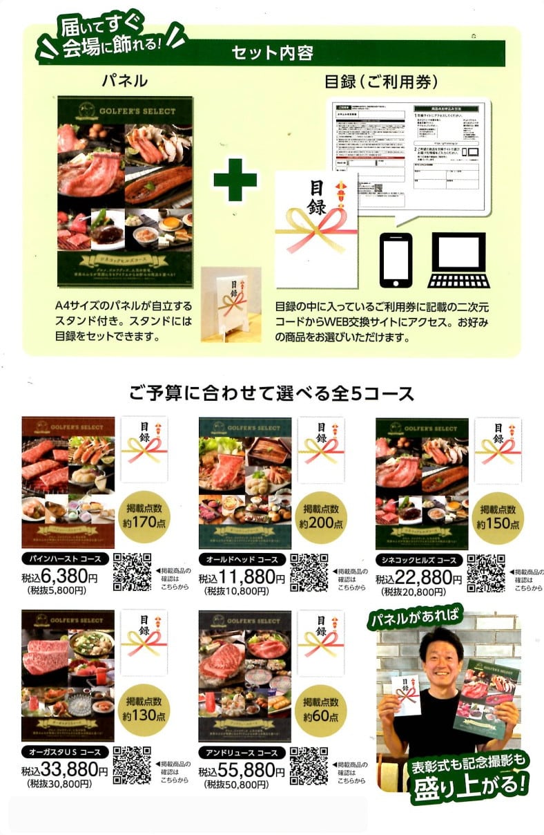 【ゴルフコンペの景品に】表彰式が盛り上がるパネル付き目録セット 【20.800円コース】(税前)