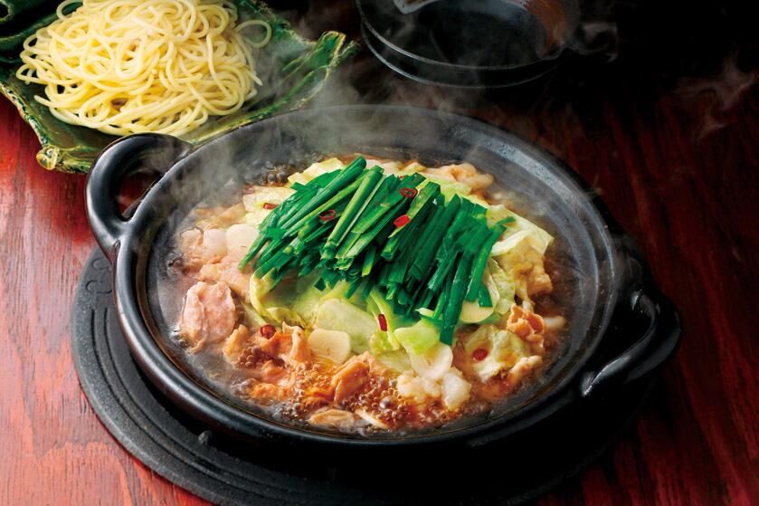 九州産華味鳥のハラミや牛もつが入った「博多華味鳥」の本格もつ鍋。